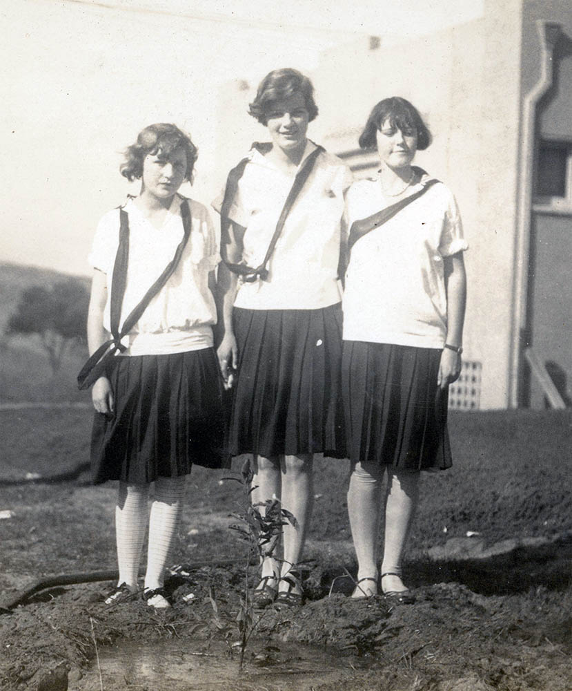 CampFire Girls planting trees along Grand Ave. (1927)L to R: Fern Hyde, Betty Hanna, Shirley Martin Everhart