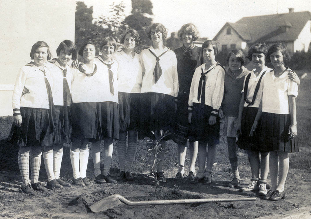 CampFire Girls planting trees along Grand Ave. (1927)4th from right: Ruth (Berkline) Sevin